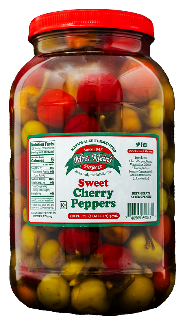 Mrs. Klein’s Cherry Peppers feature a vibrant mix of bright red and green cherry peppers, packed in a mild, well-balanced brine that highlights their natural sweetness with a gentle tang. Firm and flavorful, these peppers offer just the right amount of bite without overwhelming heat, making them a versatile addition to a wide range of dishes.