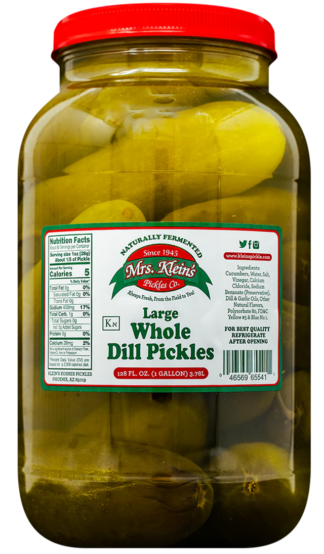 Experience the authentic taste of tradition with Mrs. Klein’s Large Dill Pickles, naturally cured under the Arizona sun using a family recipe passed down for over a century. Each whole pickle is patiently fermented to achieve the signature balance of crisp texture, bold sourness, and clean salinity that true dill pickle lovers crave.